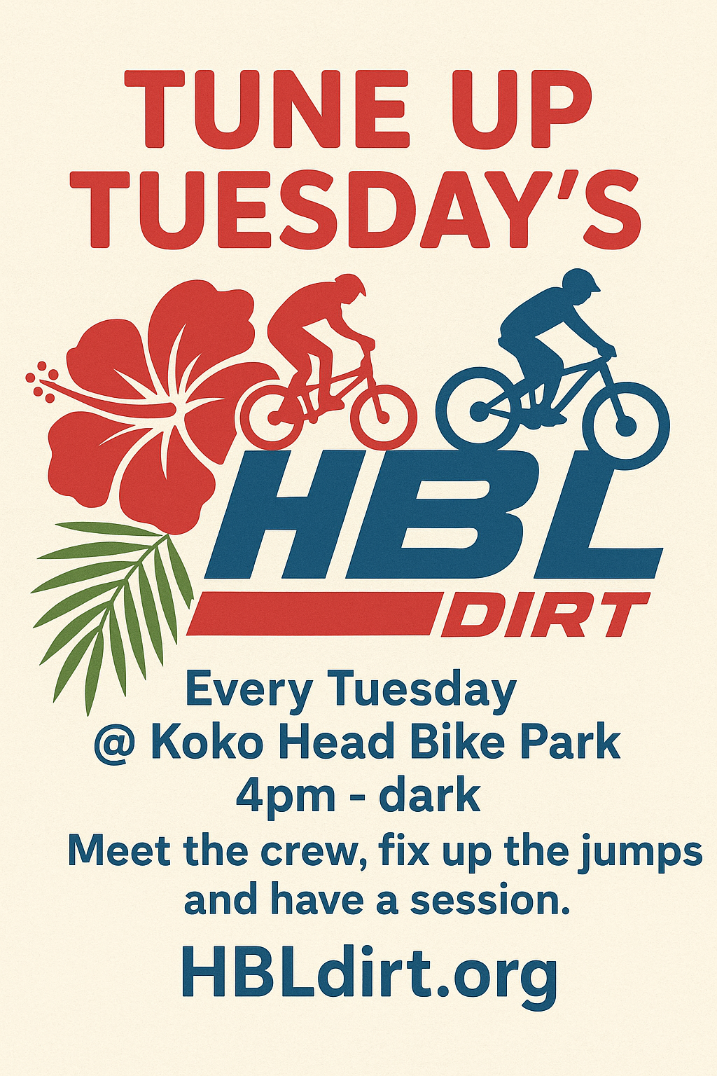 HBL dirt will have a booth! Come by and let’s connect. Learn about our current projects (Koko Head Bike Park, pump track advocacy at Patsy Mink Central Oahu Regional Park, and ‘Ohana Trail maintenance).